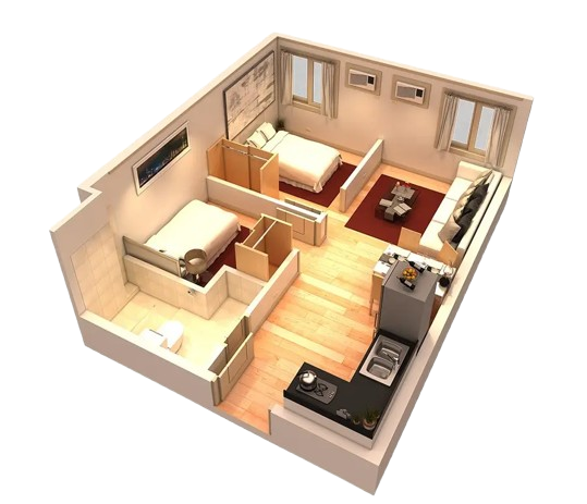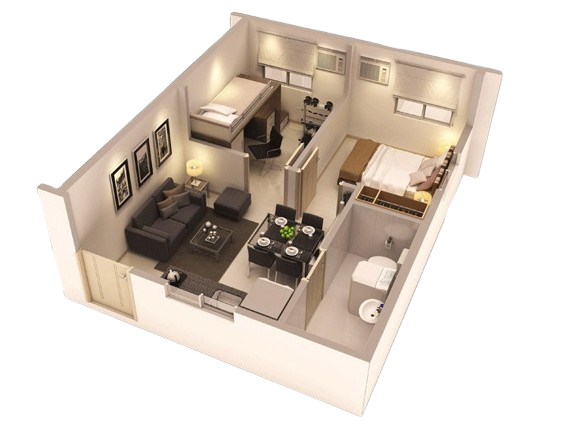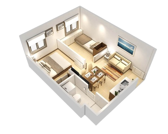 1&2 Bedroom, living Room, Dining, Kitchen, Toilet, Bath